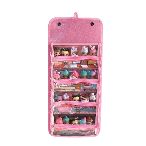 Estuche de transporte para muñecas Compatible con muñecas sorpresa Organizador colgante Bolsa de almacenamiento con bolsillos de ventana transparente para niñas